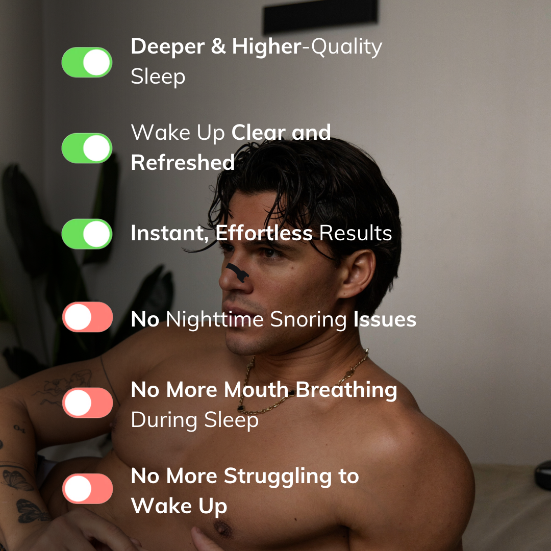 This powerful combination —  SleepPulse Mouth Tape + Nasal Strips — is designed to optimize your nighttime breathing. By encouraging nasal airflow and proper jaw position, it helps you reduce snoring, fall asleep faster, and stay in restorative sleep longer.